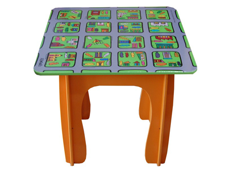MESA DIDÁCTICA BUSCACAMINOS Posee un buscacaminos central. Diseños: -Selva / -Ciudad. Construído en MDF laqueado. Medidas 50 x 50 x 50 cm. de alto.